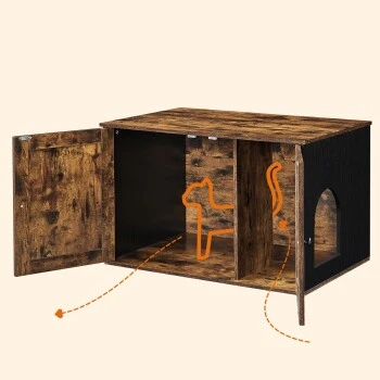 [Stilvolles Katzenklo] Mit seinem rustikalen Stil und den schicken Scheunentüren fügt sich dieses Katzenklo problemlos in die meisten Wohnstile ein und verwandelt das stille Örtchen Ihrer Katze in einen echten Blickfänger [Mehr Privatsphäre, weniger Geruch] Dank der geschlossenen Konstruktion bietet diese Katzentoilette einen privaten Ort, an dem sich Ihre Katze sicher fühlt, um ihre Notdurft zu verrichten und es entsteht weniger Schmutz – eine Win-Win-Lösung! [Geräumiger Innenraum] Mit einer Größe von 50 x 50 x 46 cm bietet das Hauptfach dieses Katzenschranks genug Platz für die meisten Katzentoiletten. Sie können auch die Trennwand entfernen, um die Fläche auf 74,9 x 50 x 46 cm zu vergrößern [Für Ihre Katze und Sie] Stellen Sie ein Katzenklo hinein, verwenden Sie es als Beistelltisch oder stellen Sie ein Katzenbett hinein, um einen gemütlichen Unterschlupf zu schaffen [Kinderleichte Montage] Ihre Katze kann es kaum erwarten, ihr neues Möbelstück auszuprobieren? Kein Problem, denn mit einer Schritt-für-Schritt-Anleitung und beschrifteten Teilen ist dieses Katzenhaus in 20 Minuten fertigFeandrea Hinweise: