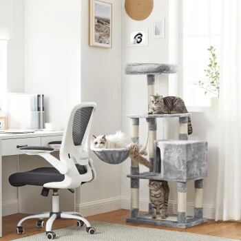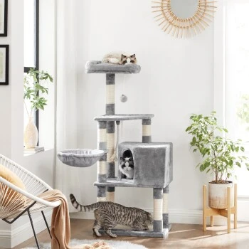 SICHERHEIT FÜR VERRÜCKTE NUDELN: Springt Ihre Katze manchmal wie von der Tarantel gestochen herum? Keine Angst, der mit Holzwerkstoff verstärkte Sockel und der Kippschutz sichern diesen Kletterturm, der auch für mehrere Katzen geeignet ist, ab