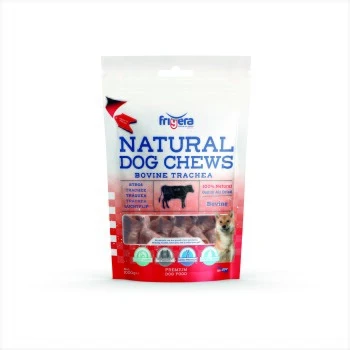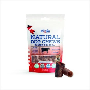 Unsere Rinderstross ist ein schmackhafter Snack aus reiner, schonend getrockneter Rinderluftröhre von Rindern aus Freilandhaltung, die für Fleisch in Menschenqualität verwendet werden. Diese Tiere werden ohne Zusatz von Antibiotika, Steroiden oder Hormonen aufgezogen, natürlicher geht es fast nicht mehr! Da dieser Snacks hauptsächlich aus Knorpel mit einigen zusätzlichen Fettresten für einen verlockenden Geschmack besteht, ist er reich an Mineralien, Kollagen, Chondroitin und Glucosamin und damit gut für die Gelenke Ihres Hundes. Vergessen Sie nicht die zahnreinigende Wirkung, die diese Delikatesse bietet!