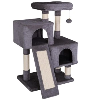 - MAßE UND FARBEN. Dieses hochwertige Katzenzubehör verfügt über die Maße 55 x 40 x 90 cm, die Höhlen über 35 x 35 x 25 cm und das Plateau 35 x 35 cm. Das langlebige Katzenspielzeug ist in den Farben Hellgrau und Dunkelgrau erhältlich.