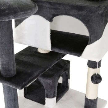 - IDEALES SPIEL- UND RUHEPARADIES. Die Ausstattung dieses Katzenbaumes mit einer Treppe und 2 Plüschbällen befriedigt den Spiel- und Jagdtrieb Ihrer Katze. Die geräumigen Höhlen und 3 gemütliche Liegeplateaus unterstützen die benötigten Ruhephasen und das beliebte Beobachten