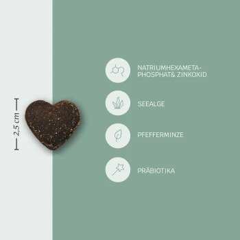 Diese Snacks enthalten alles, was eine gesunde Hunde-Schnauze braucht: Mit Probiotika, natürlichen Mikronährstoffen, Mineralsalzen und Pfefferminze stabilisieren sie das Speichelmilieu und fördern die Zahngesundheit. Von Tierärzten entwickelt und unwiderstehlich lecker!