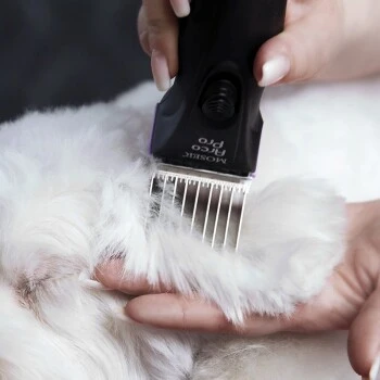 Scheren / Trimmen: Das Tier soll individuell nach seinem Felltyp und der Rasse gepflegt werden. An die gewünschte Schnittlänge herantasten, zum Beispiel mit unterschiedlichen Aufschiebekämmen, von groß nach klein, vorerst an einer verdeckten Stelle testen.