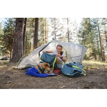 Der Kibble Kaddie ist ein reisefreundlicher Futterbehälter für Hunde. Ein kompaktes, praktisches Design ermöglicht den einfachen Transport, die Aufbewahrung und die Abgabe von Trockenfutter, ob zu Hause, unterwegs oder im Zeltlager. Der Top-Loading-Rollverschluss sichert den Inhalt (vor Verschüttungen und neugierigen Nasen) und reduziert das Volumen des Beutels, wenn das Futter weniger wird. Die leckeren Knabbereien können durch einen ausklappbaren Ausguss oben ausgekippt werden. Ins separate Innenfach gehen der Faltnapf und anders Futter.