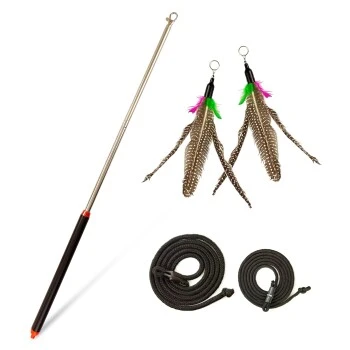 Die im Lieferumfang enthaltenen Federn und Bänder werden den Jagdinstinkt deiner Katze wecken. Unsere Federanhänger drehen sich um ihre eigene Achse, während sie durch die Luft fliegen und imitieren somit einen Vogel – die wohl liebste Beute der Katze. Die Anhänger können dank Karabinerhaken einfach und schnell ausgetauscht werden. Du kannst dieses Katzenspielzeug so optimal an die Vorlieben und Bedürfnisse deiner Katze anpassen. Deine Katze spielt zum Beispiel gerne mit Paketband oder Schnürsenkeln? Kein Problem – auch diese können blitzschnell an der Teleskopangel angebracht werden!
