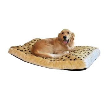 Der Bezug besteht aus hochwertigem Jacquard-Plüsch im Pfotendesign, ist abnehmbar und waschbar.