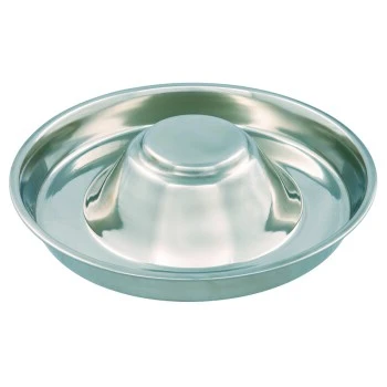 Der flache Rand ermöglicht den Tieren ein entspanntes Fressen. Die Erhöhung in der Mitte verhindert das Durchlaufen oder Hineinsetzen.